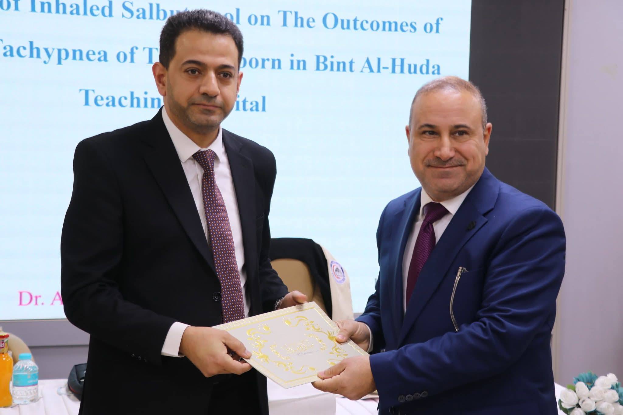 وأشاد الخالدي بالجهود المبذولة من قبل الطلبة والأساتذة المشرفين، مؤكدًا أهمية برامج البورد العربي في إعداد ملاكات طبية كفوءة قادرة على تقديم خدمات صحية تخصصية عالية المستوى، تنعكس إيجابًا على الواقع الصحي في محافظة ذي قار.