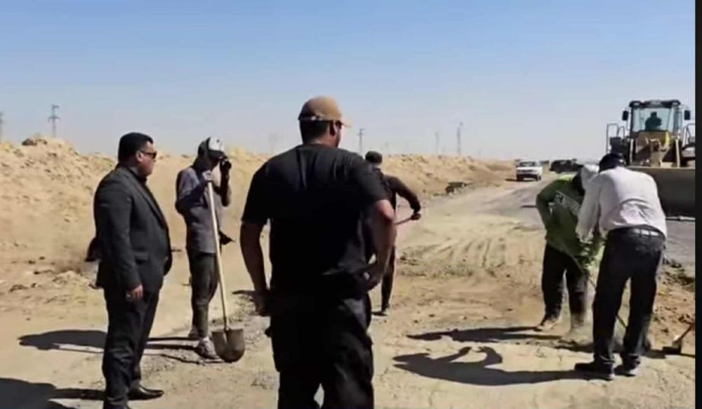 قائممقام قضاء الاصلاح يشرف على اعمال اصلاح بعض التخسفات الحاصلة على طريق الاصلاح - ناصرية