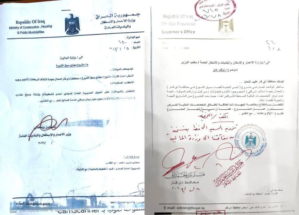 محافظ ذي قار: إجراءات عاجلة لإطلاق تمويل مشروع البنى التحتية في سوق الشيوخ واستئناف العمل قريبا
