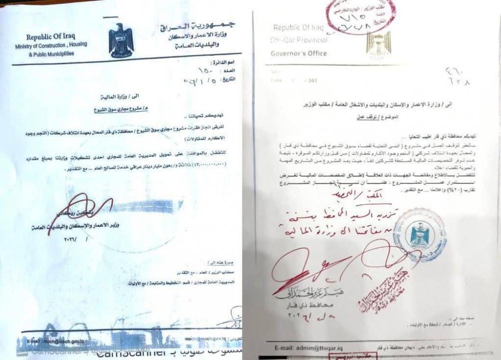 أعلن محافظ ذي قار هيثم عزيز الحمداني مباشرة الحكومة المحلية باتخاذ إجراءات عاجلة لمعالجة توقف العمل في مشروع البنى التحتية لقضاء سوق الشيوخ بعد سحب الشركة المنفذة آلياتها بسبب تأخر صرف مستحقاتها المالية البالغة 43 مليار دينار عراقي.