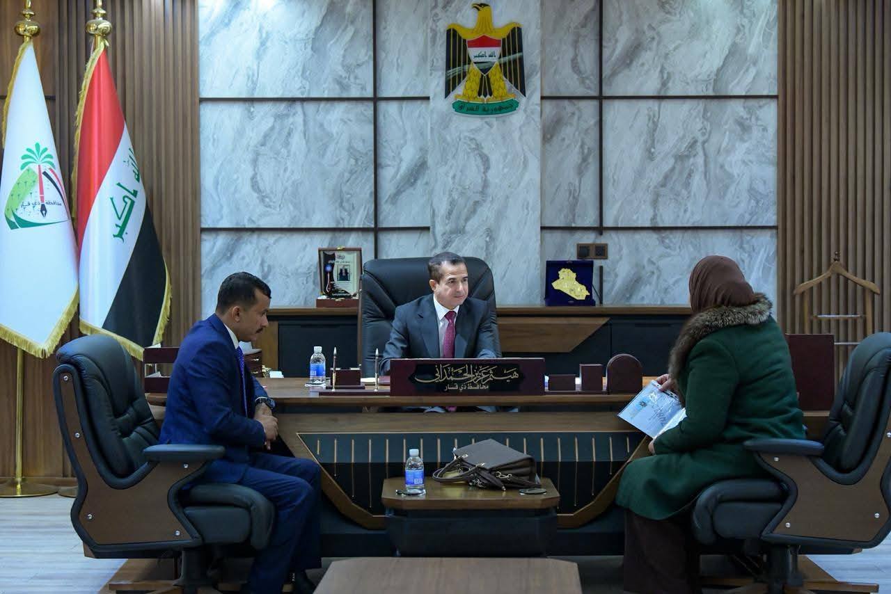 استقبل محافظ ذي قار هيثم عزيز الحمداني مدير مدينة أور السياحية علي علال والوفد المرافق له وبحث آخر المستجدات والخطط الخاصة بتطوير المدينة ومبانيها السياحية.