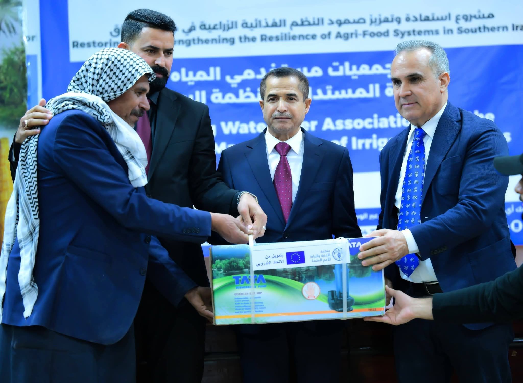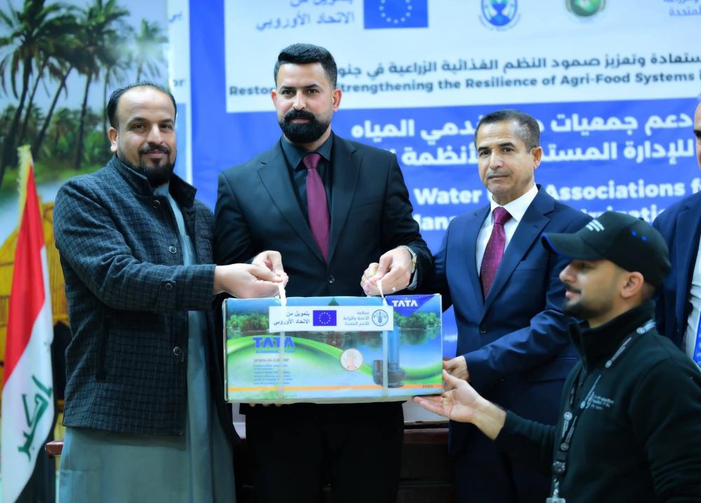 أشرف محافظ ذي قار هيثم عزيز الحمداني على عملية تسليم معدات تطوير سلسلة القيمة الغذائية لمحصولي الطماطة والخضروات، ضمن مشروع استعادة وتعزيز مرونة نظم الأغذية الزراعية في جنوب العراق الممول من الاتحاد الأوروبي والمنفذ من قبل منظمة الأغذية والزراعة (الفاو) بالتعاون مع وزارة الزراعة العراقية ومديرية زراعة ذي قار والحكومات المحلية.