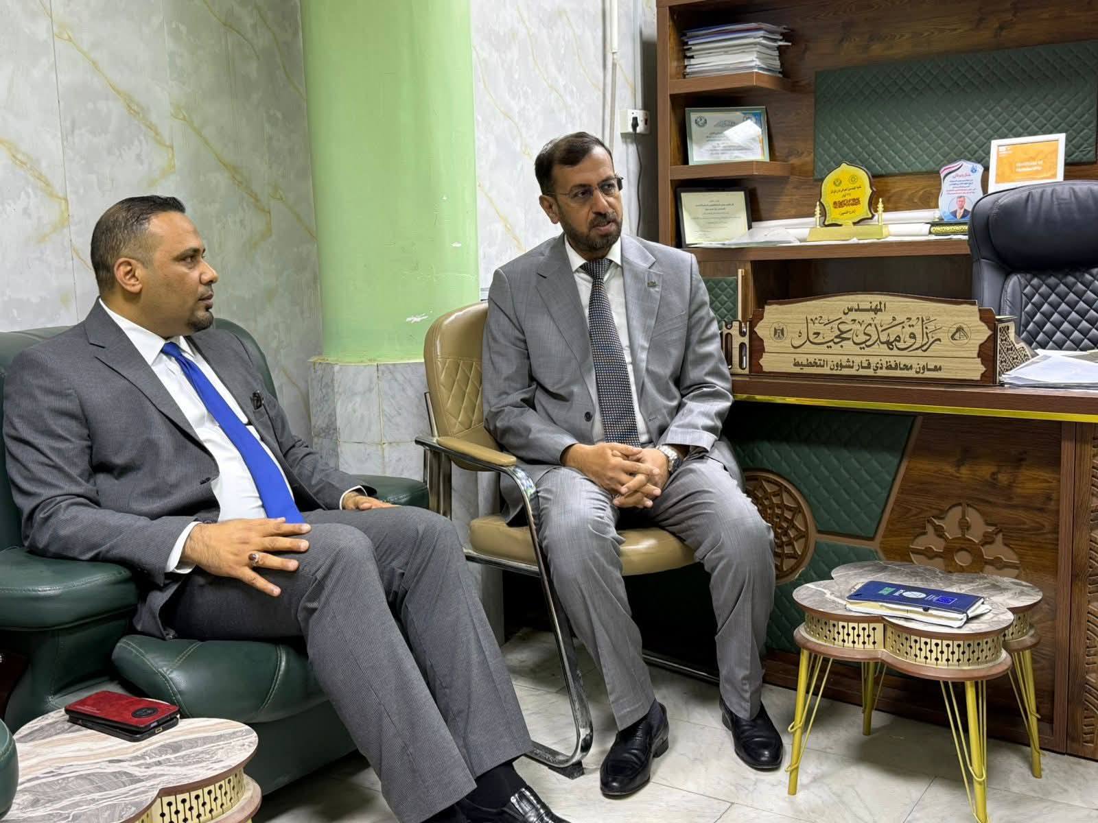 استقبل معاون محافظ ذي قار لشؤون التخطيط والتنمية المهندس رزاق مهدي العلي ممثلي دائرة الهجرة والمهجرين الدكتور اكرم حياوي والدكتور احمد ولهان وناقش معهم رقمنة ملفات الهجرة والمهجرين باستحداث منصة رقمية تساعد في الاحصاءات الخاصة بالمهاجرين والمهجرين وتحويل ملفاتهم الى رقمية.