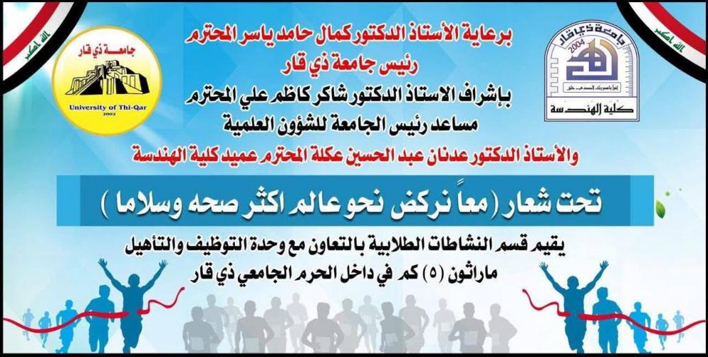 حضر معاون محافظ ذي قار الشؤون الادارية جبار الحسيناوي  ماراثونا رياضيا أُقيم في كلية الهندسة بجامعة ذي قار، بمشاركة واسعة من الطلبة كما قام بتكريم الفائزين بالمراكز الأولى ضمن هذه الفعالية تقديرا لجهودهم وتميّزهم.