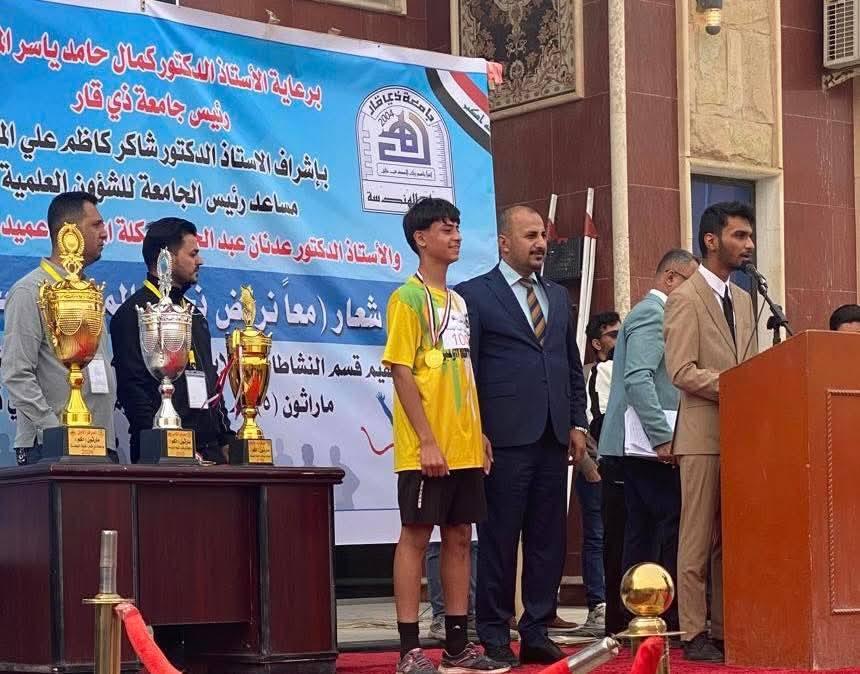 معاون محافظ ذي قار الشؤون الادارية يحضر ماراثونا رياضيا أُقيم في كلية الهندسة بجامعة ذي قار