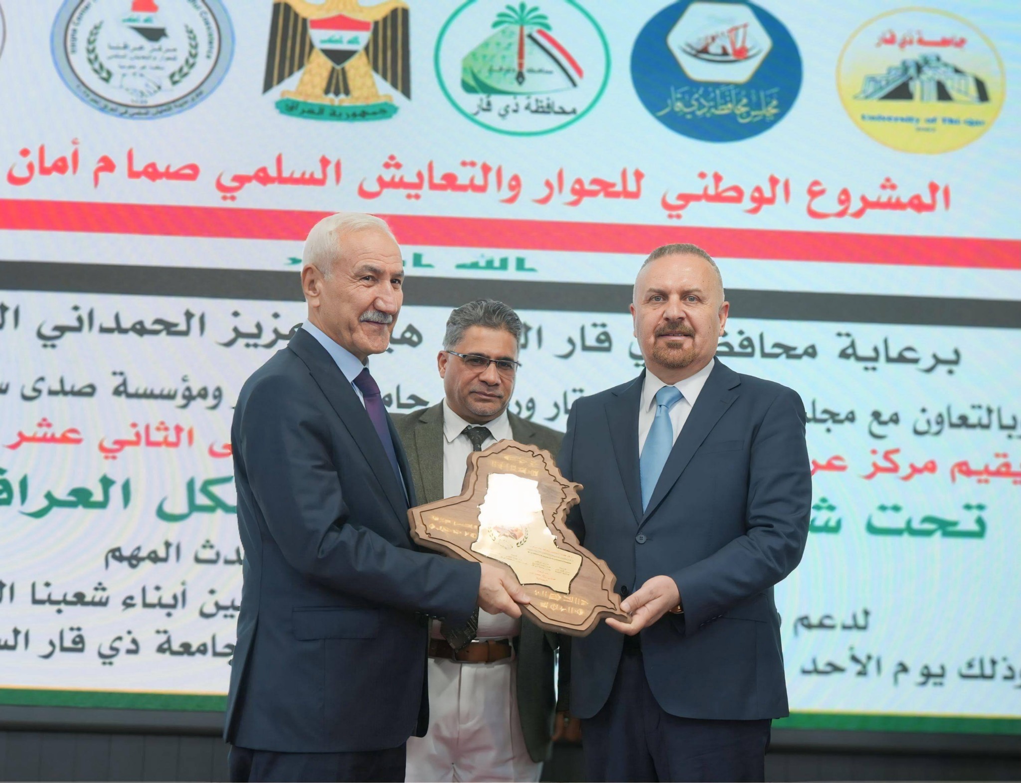 وأكد العتابي خلال كلمته له أهمية ترسيخ ثقافة الحوار والتعايش السلمي بين مختلف مكونات المجتمع، مشيداً بالدور الذي تضطلع به المنظمات والمراكز المعنية في نشر قيم التسامح وتعزيز الوحدة الوطنية كما أشار إلى أن محافظة ذي قار كانت ولا تزال نموذجاً للتآخي والتعايش بين أبناء الشعب العراقي.