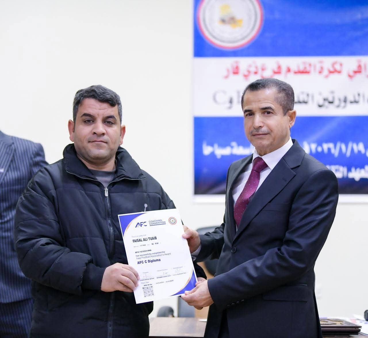 وأكد المحافظ أن هذه الشهادات تمثل إضافة نوعية للكوادر الرياضية في المحافظة، مشددًا على أهميتها في رفع مستوى التدريب ودعم الطاقات الشابة بما ينعكس إيجابا على مسيرة كرة القدم في ذي قار.