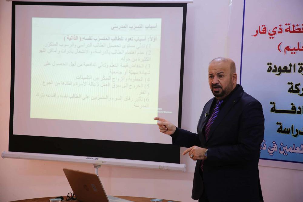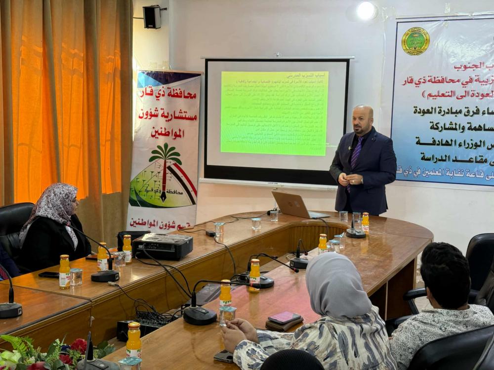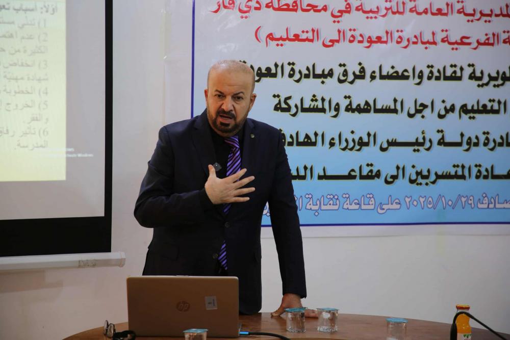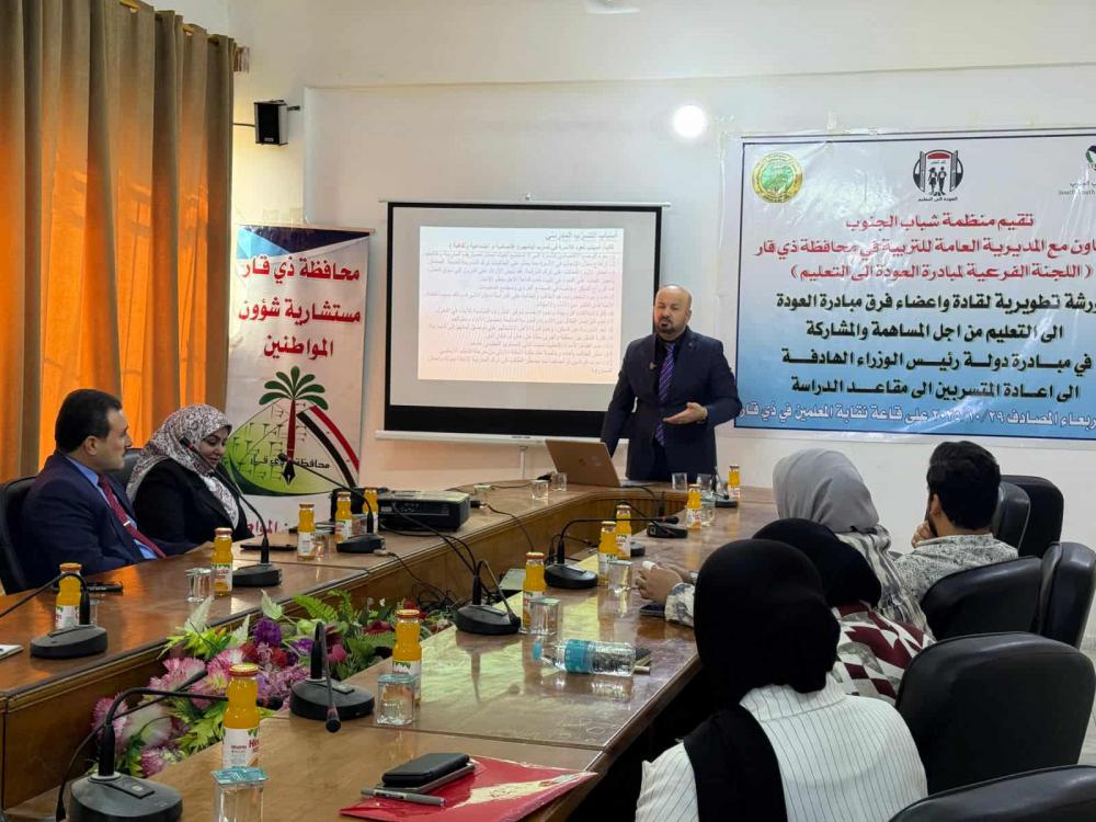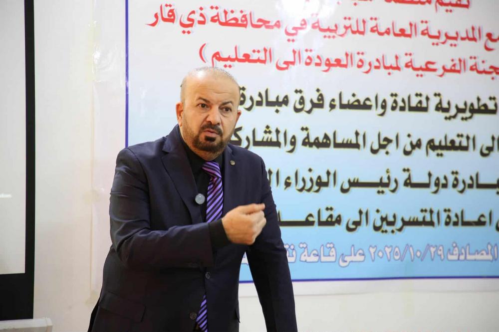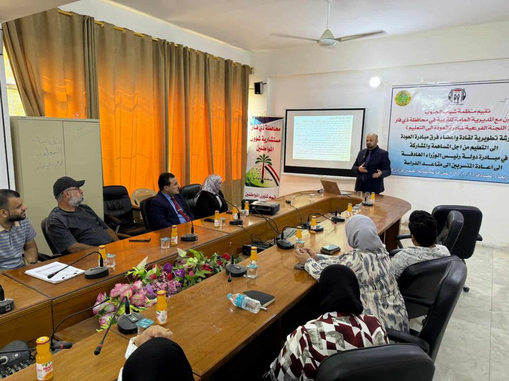 مستشار محافظ ذي قار يشارك في ورشة تطويرية لقادة وأعضاء فرق مبادرة العوده إلى "التعليم”