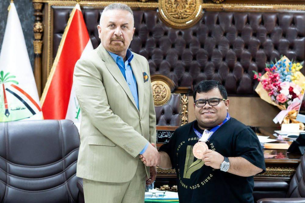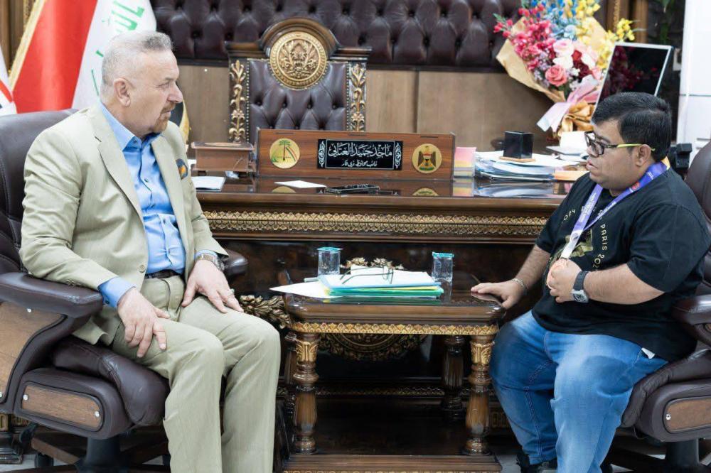 نائب محافظ ذي قار يلتقي بالبطل جراح نصار الحائز على الميدالية البرونزية في ألعاب القوى
